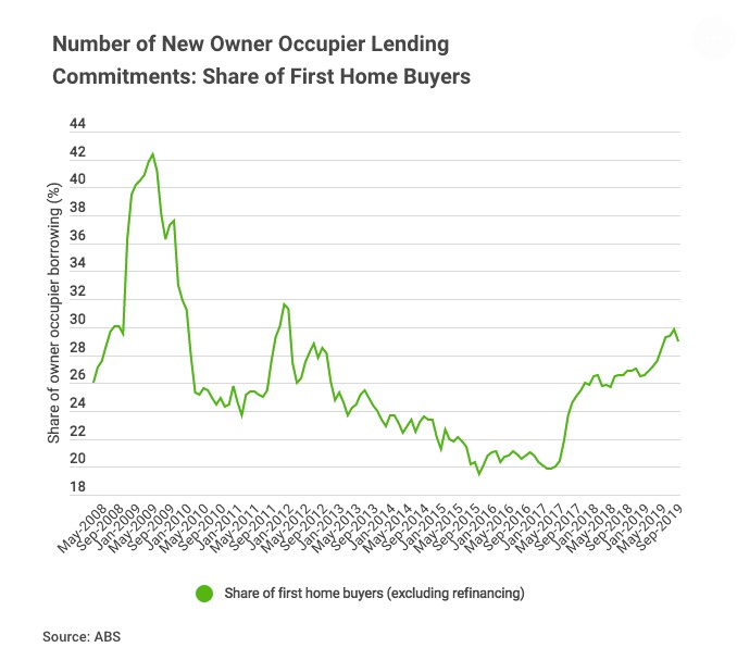 First home buyer numbers have surged recently in line with previously falling house prices, hitting a six-year high of 29.8% in terms of new borrowers in August.