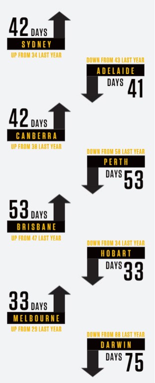 These figures, the Property Pulse states, have been holding steady over the last few months, yet is higher compared to December 2016, which saw 44 days nationwide and 37 days for capital cities.